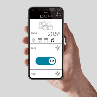 • Fernzugriff (SP8-Remote): Mit dem Fernzugriff können die Nutzerinnen und Nutzer ihre Heizung, Beleuchtung und Beschattung über KNX jederzeit auch von unterwegs individuell steuern. Der Zugriff erfolgt sicher über die Cloud.